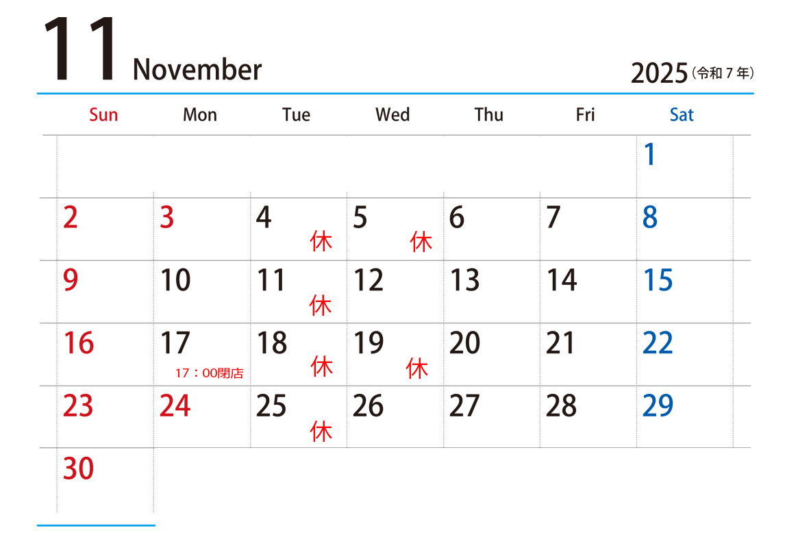 ※11/17(月)は17時閉店とさせて頂きます